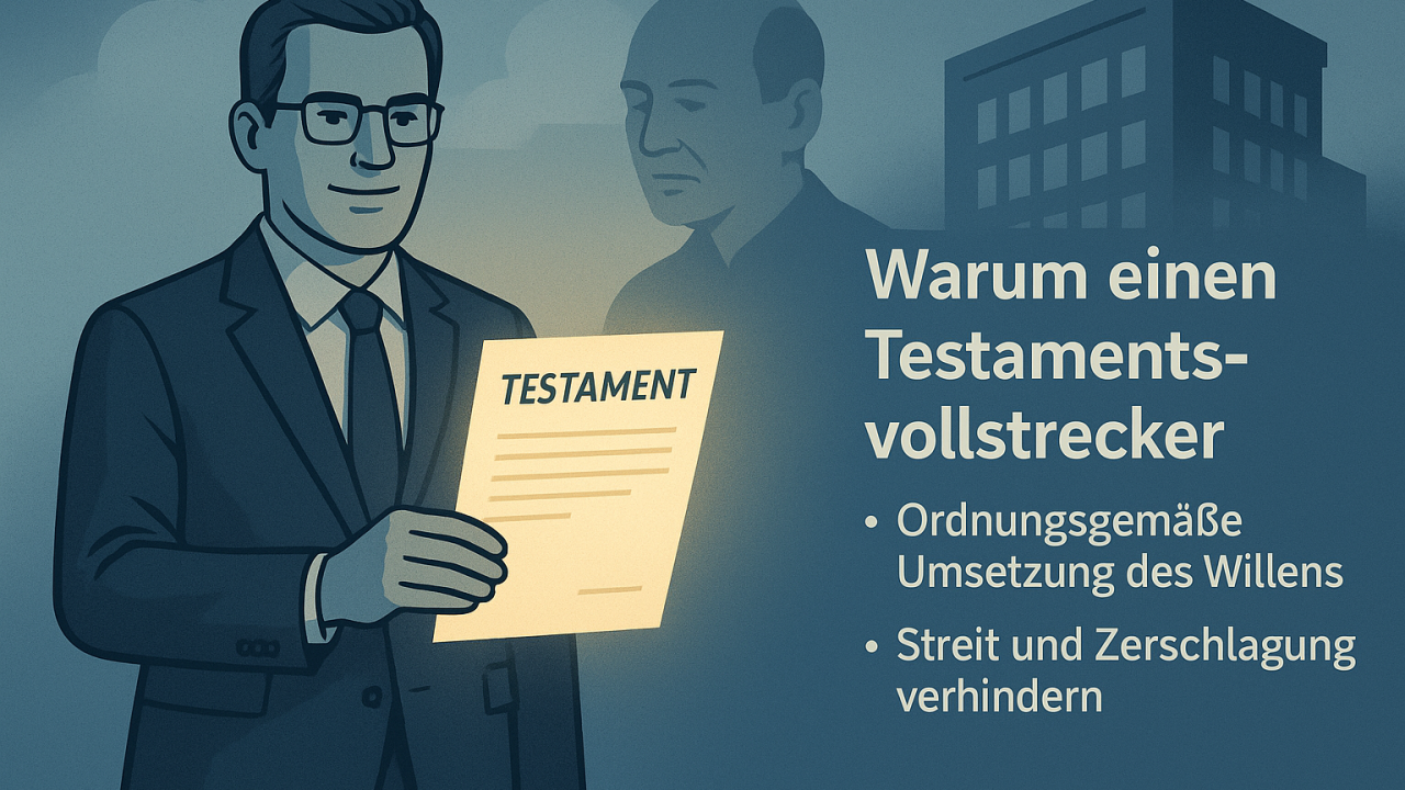 Ein Testament kann vieles regeln, etwa die Verteilung des Vermögens, die Festlegung von Erbquoten oder die Formulierung von Auflagen. Doch ein Testament kann kaum verhindern, dass Spannungen entstehen, Emotionen hochkochen oder Übergabeprozesse ins Stocken geraten. Wer in seinem Testament klare Regelungen trifft, sollte sich daher fragen, wer dafür sorgt, dass diese auch respektiert, verstanden und durchgesetzt werden.
